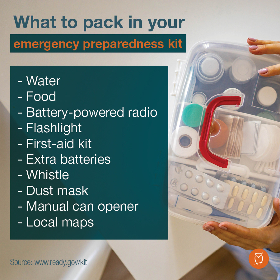 Disaster can strike at any time so make sure you have an emergency preparedness kit. For the full list, visit [URL]